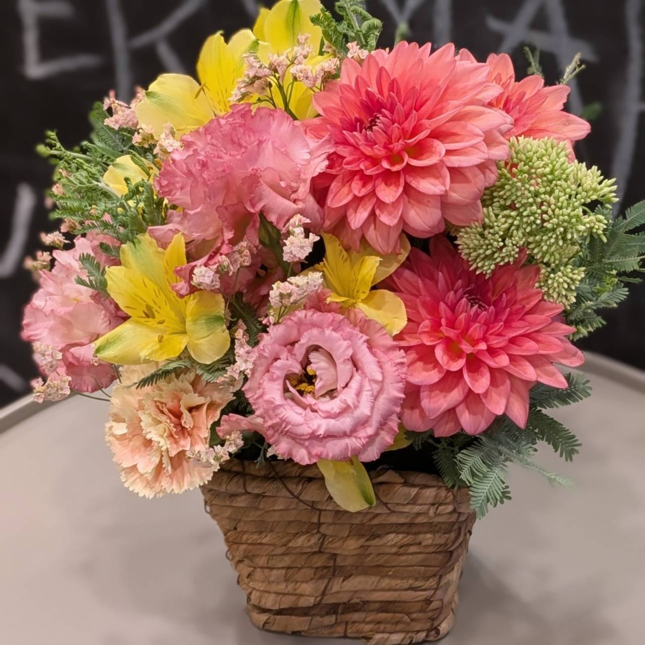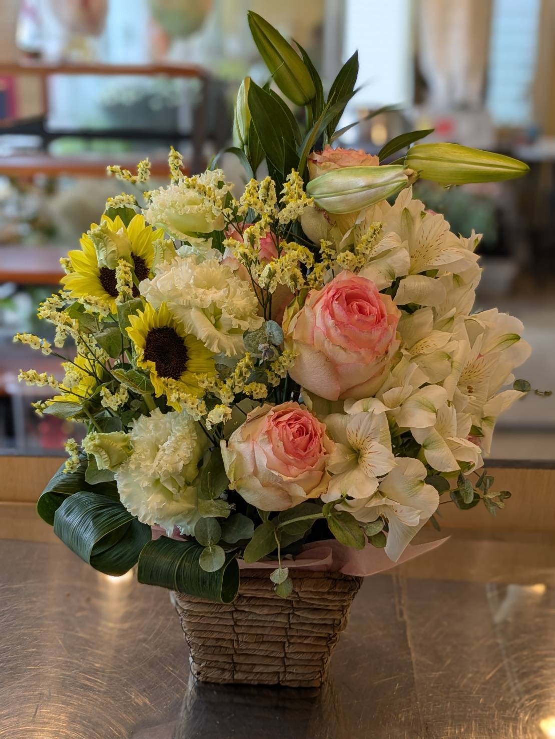 使用花材:バラ・カーネーション・その他季節の花など